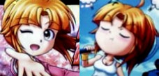 ルーシー | 2007/1発売 夢夢/ナナ/まりこと、パチンコキャラの流用オンリーだったSANKYOから、初のパチスロ向け萌えキャラ。 ちなみに、下側のなつみ(安倍なつみがモデル?)は、左は「ソフトクリーム」、右は「スイカ割りシーン」の画像なのでお間違えなく。 |